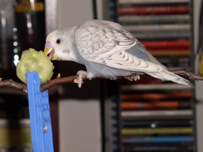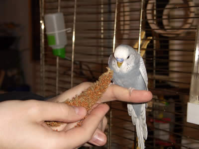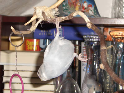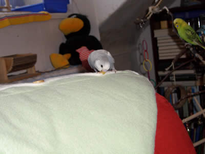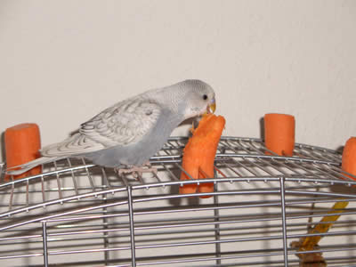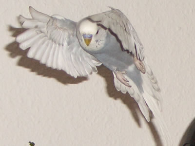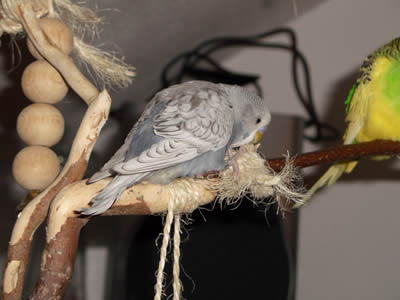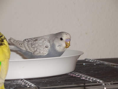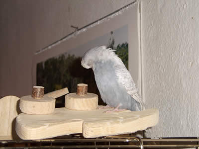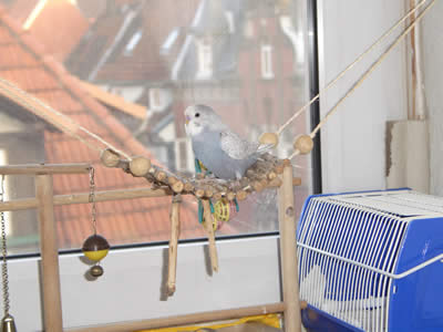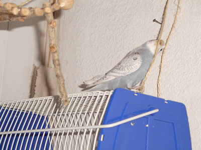 Ghost zog am 16.09.2005 hier ein. Auch er ist ein Küken von Meike. Eigentlich war es gar nicht geplant, einen weiteren Welli hier einziehen zu lassen, aber als sich herausstellte, daß Ghost ein grauer Spangle ist, da war klar: der muß zu den Musketieren. Zudem Crazy auch kaum zu bändigen war, versprachen wir uns von einem weiteren Küken, das er Crazy etwas in ihre Schranken verweist. Eigentlich hatten wir es uns sehr schön vorgestellt, Crazy und Ghost als ein neues Traumpaar im Welihome. Dazu sollte es jedoch nicht kommen, Ghost hat sich anderweitig orientiert.