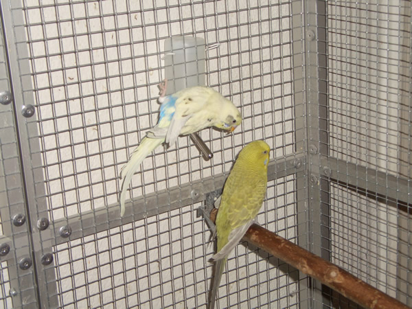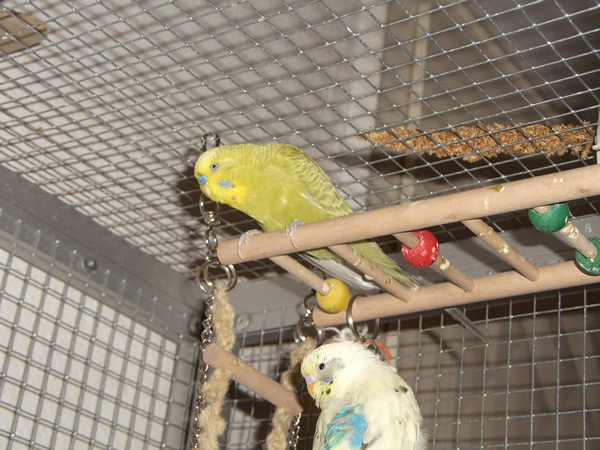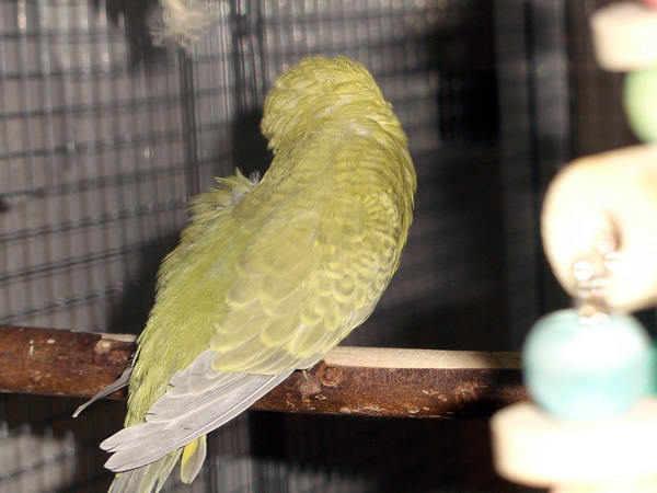Micky kam im Sommer 2007 als Abgabevogel zu uns. Zwei Partner waren ihm bereits gestorben und seine Federlosen wollten ihn nun in einen größeren Schwarm geben. So kam er zu uns. Leider stellte sich sehr schnell heraus, dass Micky gänzlich flugunfähig ist. Kein Tierarzt kann genau sagen, warum das so ist. Micky hat sehr lange gebraucht, bis er sich bei den Musketieren eingewöhnt hatte. Man merkte ihm lange an, dass er über ein Jahr alleine gesessen hatte. Erst als Hiro hier einzog, änderte sich Mickys Verhalten. Er kommt nun auch mal aus der Voliere heraus, die behindertengerecht gepolstert ist, da er nur zu gerne Flugübungen macht und dabei natürlich auf den Boden plumpst. Vor Menschen hat er allerdings mächtig Angst, was schade ist, da man ihn manchmal vom Teppichboden im Wohnzimmer "aufklauben" muss.