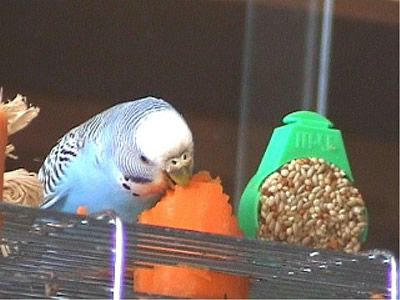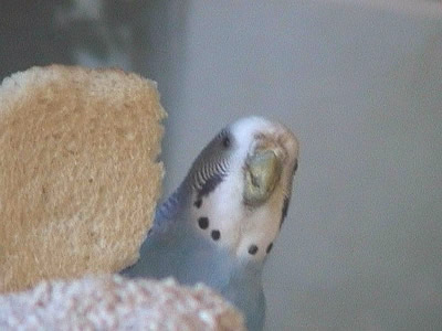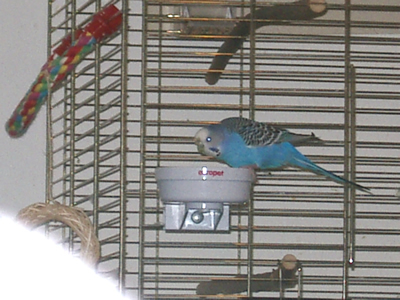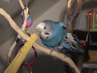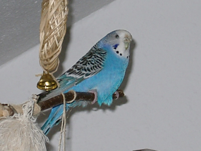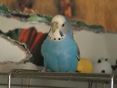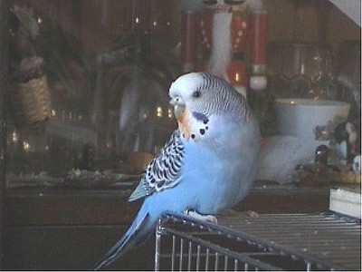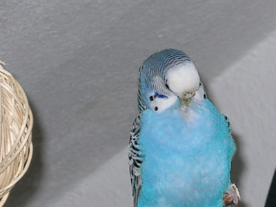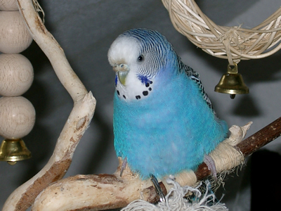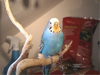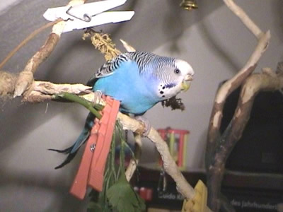 Monty kam im am 30. Juni zu uns. Am Wochenende davor war unsere geliebte Rudy nach zwölf Jahren bei uns verstorben. Wir wollten dann Speedy nicht solange alleine lassen und gingen in ein kleines Zoolädchen das von einer jungen, sehr engagierten Frau geführt wurde. Dort waren wir sehr oft einfach nur zum Wellis anschauen oder auch zum quatschen. Sie hatte noch fünf Wellis in ihrer Voliere sitzen und da Rudy gelb gewesen war, wollte ich auf gar keinen Fall einen gelben Sittich. Also fiel unsere Wahl auf Monty. Monty jedoch schaute völlig unbeteiligt, selbst als sie mit einer Trennscheibe von den anderen Wellis getrennt war, schaute sie noch so, als wolle sie sagen: mich könnt ihr doch gar nicht meinen. Aber ehe sie sich versah war sie schon in der Transportschachtel und auf dem Weg in ihr neues Zuhause. Monty hatte während all der Jahre mit Speedy immer die "Hosen" an und drangsalierte Speedy sogar. Später, als dann Speedy nicht mehr lebte und erst Neelix und dann die anderen Wellis dazu kamen, änderte sich das Verhalten sehr. Monty war plötzlich die Außenseiterin, fand keinen Zugang zu den anderen und wurde sogar von Gimli öfter durch das Wohnzimmer gejagt. Neelix interessierte sich zwar für sie, da sie in der Anfangszeit aber keinerlei Anstalten machte, Neelix Balzgehabe jemals zu erwidern, wandte er sich Sancho zu. Als wir dann den Augenblick für gekommen sahen, noch ein Männchen dazuzugesellen, änderte sich Montys Verhalten noch einmal. Sie wurde wieder sehr viel selbstbewußter und kann sich inzwischen recht gut den anderen gegenüber behaupten. Sie interessiert sich sehr für Higgins, der aber hat sein Herz an Gimli verloren. Zwischenzeitlich schäkert sie auch ein wenig mit Sancho. Nun haben wir dann beschlossen, noch ein Männchen bei uns aufzunehmen, damit das Geschlechterverhältnis endlich ausgewogen ist. Mal sehen, ob Spot sich auch für Monty interessiert, nebeneinander sitzen sie jedenfalls sehr oft.